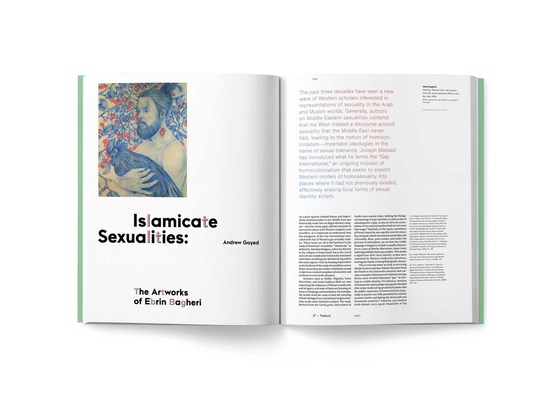 Following our last issue, on the theme of feminisms, the feature continues with our reflection on the question of gender and sexuality by delving into practices and theories of artists who seek to transcend the idea of a binary, patriarchal society that is heteronormative and cisnormative. It explores, among other issues, the strategies deployed by artists to make LGTB+ communities visible and makes the multiplicity of voices on the margin of the patriarchal regime of knowledge production heard.