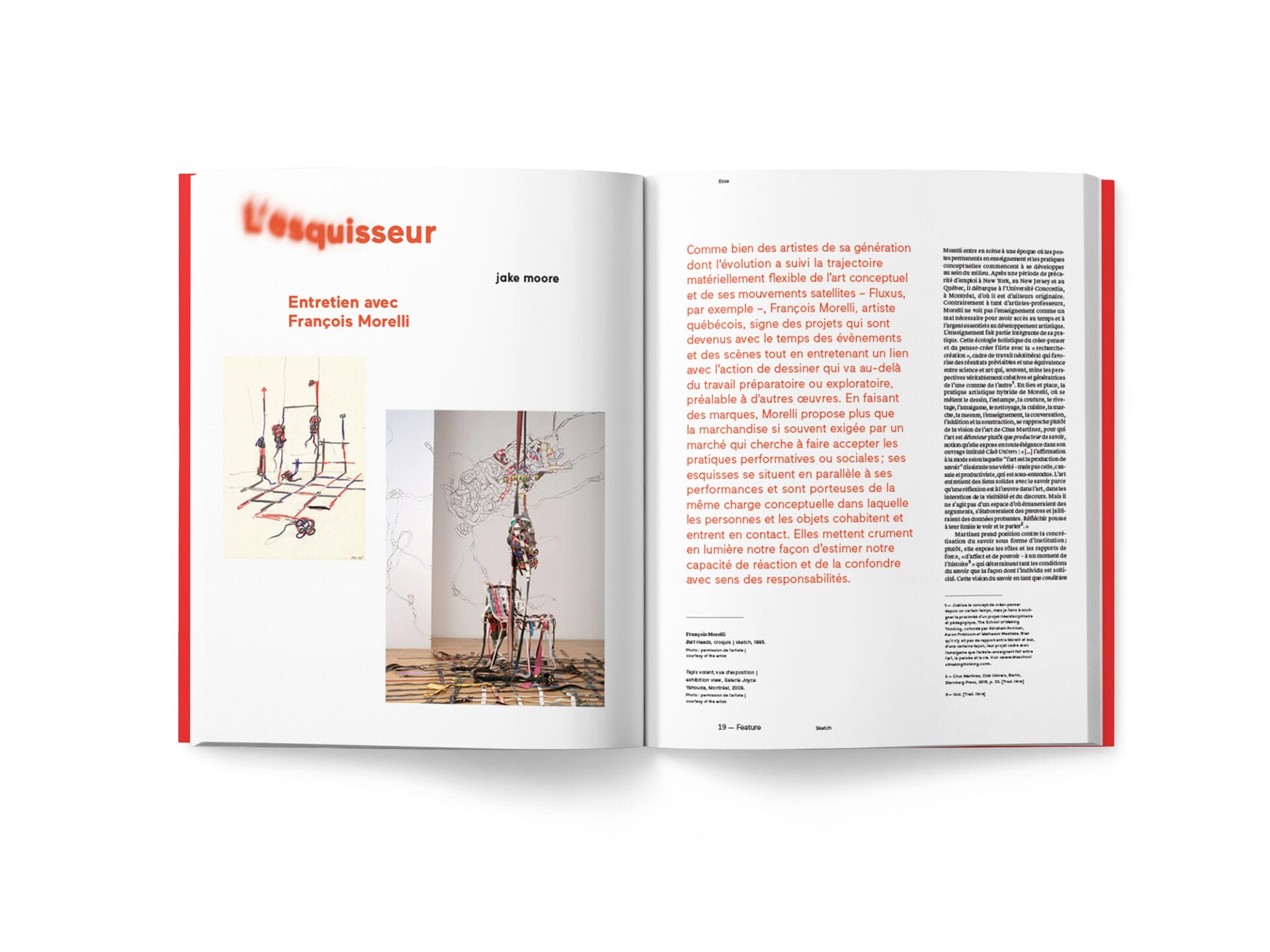 These various modes, which we convene under the term sketch, have a common preparatory function and consequently, a status of incompletion. The sketch leads to a wide range of strategies and gives rise to new research on the materiality, temporality, and spatiality of a work. To do this, it still takes the traditional route of drawing, painting, and sculpture, and sometimes of new technologies, while also referring to the outline of a movement or a brief posture. Therefore, we designed this issue to reflect the abundance of possibilities and deliberately break away from an essentially discipline-based approach to drawing, focusing instead on the creative intention found in the sketch and the fluctuations of its outcomes.