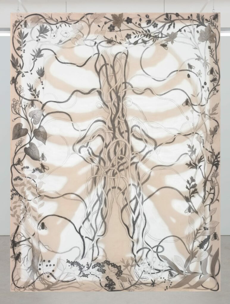 Cindy Ji Hye Kim approaches her practice as a form of writing. It is a pertinent strategy in that text generates images that remain unseen and the tension between the perceptible and the hidden is precisely what interests her. Her figures are metaphorical verbs that convey movement and action. They are often painted in impossible contraptions, negotiating the confined space of the pictorial plane with obtrusive scaffolds, sets, and other disturbing objects. These punctuating elements restrict the breadth of their movement but they also delimit the boundaries of their existence.