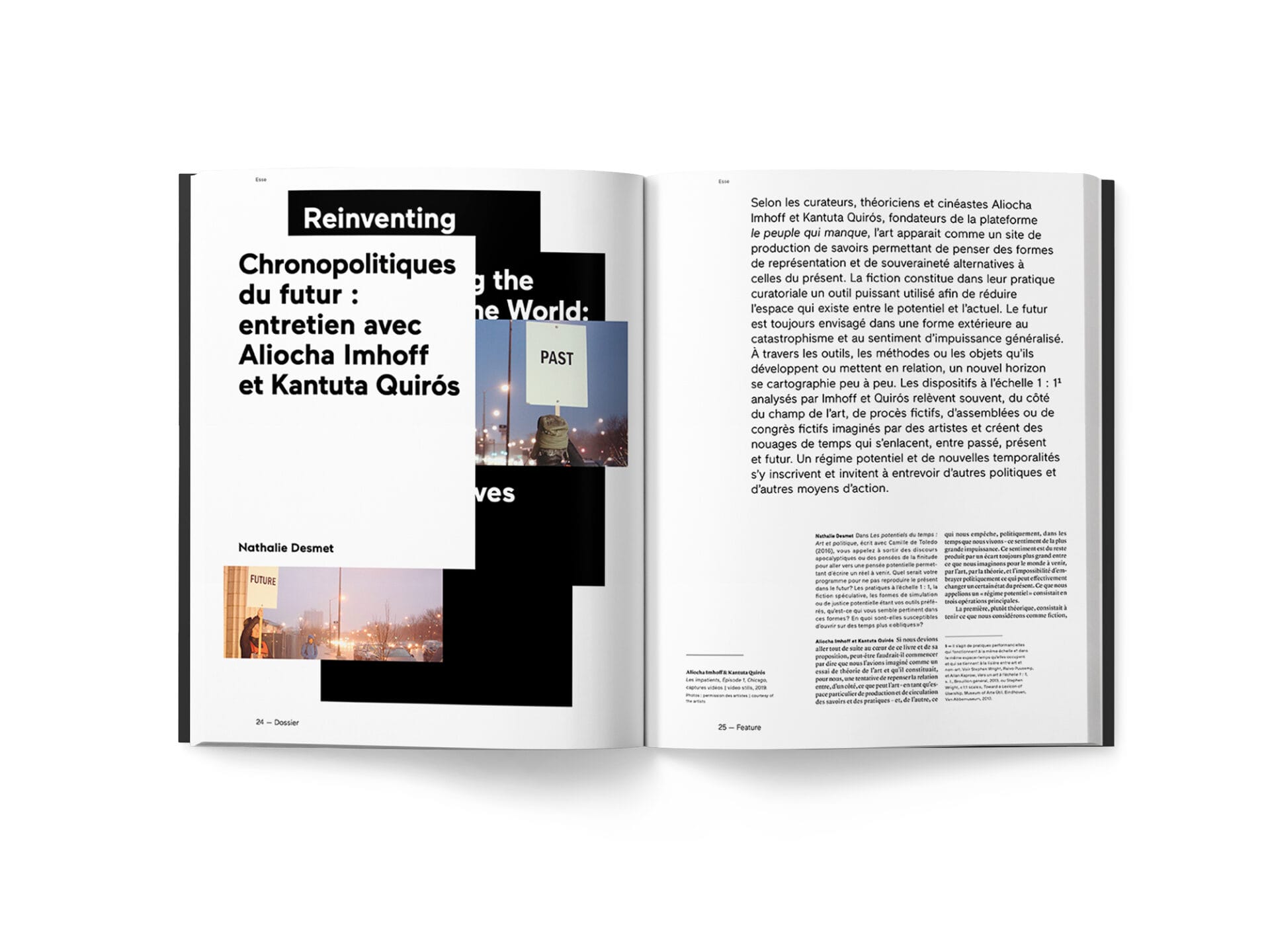 This hundredth issue explores the theme of futurism, which offers new avenues for thinking about a more positive continuation of the world outside the traditional schemes of critical utopianism. Whereas according to our chronological way of conceiving time, the past would influence the present and the latter would act on the future, futurity proposes that the future we anticipate determines our present actions. Thus the future that we imagine would act directly on the present by shaping these actions. The notion of futurity can also be understood as a form of reparation inscribed in a decolonial perspective. Practices such as Afrofuturism and Indigenous Futurism, which specifically target these issues, are a focus of reflections on futurity. We also discover works that go beyond time frames, combining traditional knowledge and technology, ancestral myths and speculative fiction, works that are resolutely critical and committed to the future.