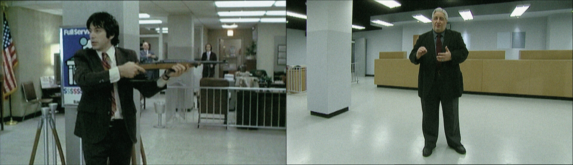 Faced with such questions from historians, many contemporary “documentary-style” artworks offer to let us relive the past through a process of anamnesis. These works, more or less fictional — as they integrate real documents and documentaries — may affect the events’ temporality, which is modified and transformed by this sort of reprising. Pierre Huyghe’s work The Third Memory, presented at the Centre Georges Pompidou in 1999, is very instructive in this regard. It is largely a documentary re-creation of a fiction, Sydney Lumet’s film Dog Day Afternoon (1975), itself based on a real event: John Wojtowicz and Salvatore Naturile’s armed bank robbery and hostage-taking in an attempt to get the money needed for Wojtowicz’s partner’s sex-reassignment surgery. The attack, broadcast live on television, ended in failure: Naturile died and Wojtowicz was imprisoned. Huyghe’s installation included period documents, posters, press clippings, and an excerpt from a television program featuring Ernest Aron (the protagonist’s boyfriend, who had since become Liz Debbie) and John Wojtowicz, who have shared a duplex since the end of his prison term. In another room, the artist’s studio reconstruction of the attack was screened; John Wojtowicz played himself and explained what really happened. The film, a double projection, is intermittently accompanied by sections of Lumet’s fiction film. The set is a reconstruction of the interior of the bank, and the hold-up man himself, seen free years later, is replaying his words and acts. The entire installation primarily seeks to re-establish some truths, which, according to Wojtowicz, detracted from his actions, notably the idea that he sold out his accomplice to the police (which is untrue). The most surprising thing is that, using Huyghe’s docu-fiction work, Wojtowicz wants to establish the truth of Lumet’s fiction, which in the end is neither true nor false, because it is a fiction. Even if inspired by fact, it remains a pure invention. The Third Memory is thus at the crossroads of the documentary reconstruction of facts, gestures, words, spaces, and of the fiction and the actual and real presence of the protagonist rethinking and replaying certain moments. The ensemble manages to become another kind of memory, a third memory, delivering one possible version of the tragedy in which proof and truth, judgment and critique are brought together without the artist claiming to provide a complete resolution or exhaustive monstration of what happened.