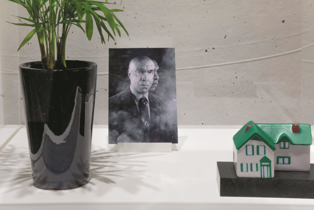 This powerful triad is one of the many highlights in an exhibition that re-engages the Collection d’oeuvres d’art de l’UQAM, comprised of over 4,000 works spanning almost a half a century. As the gallery’s first in-person exhibition after the first wave of the COVID-19 pandemic, Mending looks back at the past while projecting a critical eye for the connective tissue that unites a broad cast of actors. From the outset, Mario Merola’s Presto Moderato (1966), a colourful composition of vertical wooden slats that pulsate with energy, harks back to the university’s earlier days with an artist who served as professor for over twenty years. In the main space, a number of works employ the structural motif of a grid, such as Michel Goulet’s Positions Perplexes (2004), a cold steel structure that binds delicate and brightly painted everyday objects.